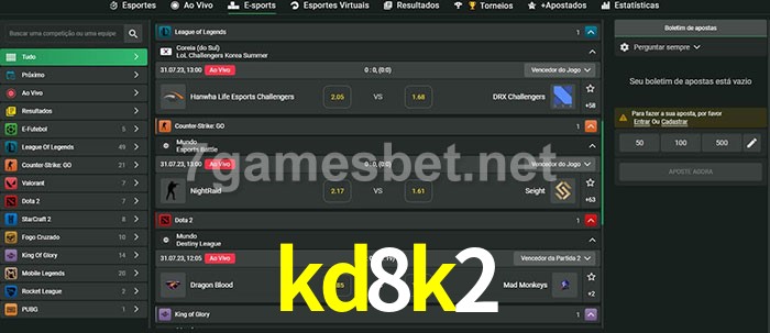 O kd8k2 oferece uma grande seleção de opções de apostas em e-sports com probabilidades competitivas